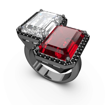 Beyaz zirkon, garnet ve siyah zirkon 925 ayar siyah rodyum kaplama gümüş yüzük