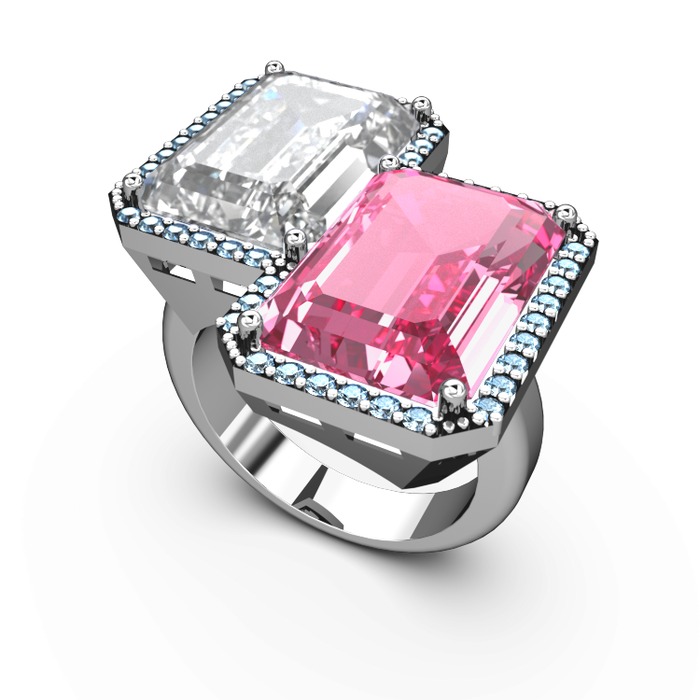 Beyaz zirkon, pembe kuvars ve akuamarin 14 ayar beyaz altın yüzük
