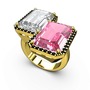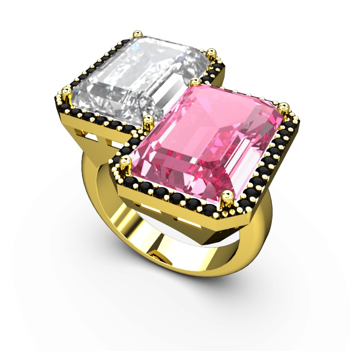 Beyaz zirkon, pembe kuvars ve siyah zirkon 8 ayar altın yüzük