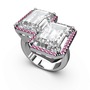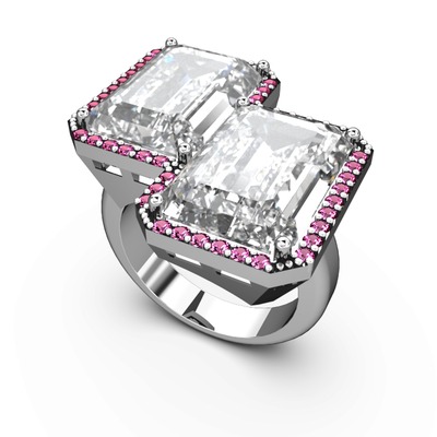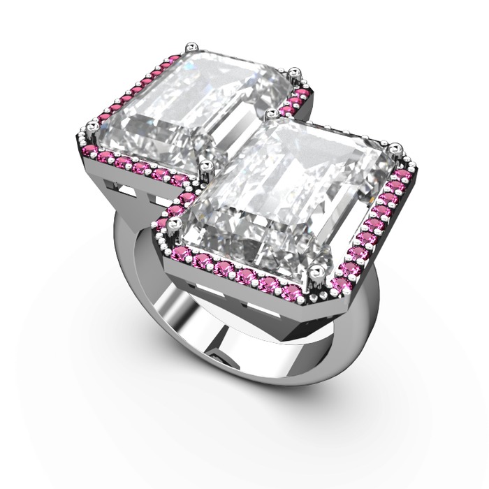 Beyaz zirkon ve rodolit garnet 14 ayar beyaz altın yüzük