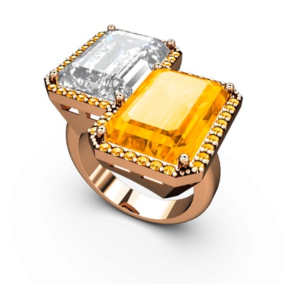 Beyaz zirkon ve sitrin 14 ayar rose altın yüzük