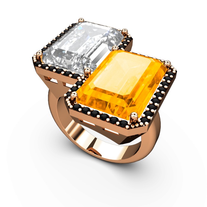 Beyaz zirkon, sitrin ve siyah zirkon 18 ayar rose altın yüzük