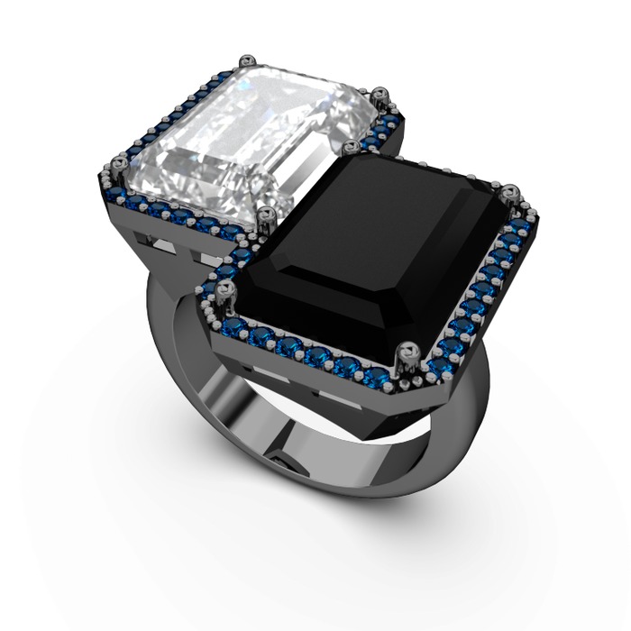 Beyaz zirkon, siyah zirkon ve lab safir 925 ayar siyah rodyum kaplama gümüş yüzük