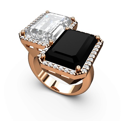 Beyaz zirkon, siyah zirkon ve swarovski 14 ayar rose altın yüzük