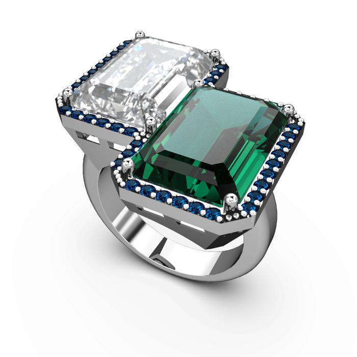 Beyaz zirkon, yeşil kuvars ve lab safir 925 ayar gümüş yüzük