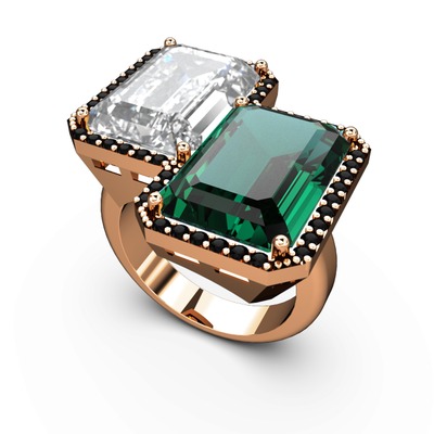 Beyaz zirkon, yeşil kuvars ve siyah zirkon 18 ayar rose altın yüzük