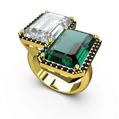 Beyaz zirkon, yeşil kuvars ve siyah zirkon 925 ayar altın kaplama gümüş yüzük
