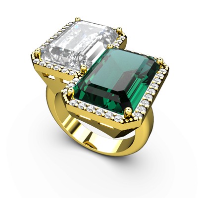 Beyaz zirkon, yeşil kuvars ve swarovski 14 ayar altın yüzük