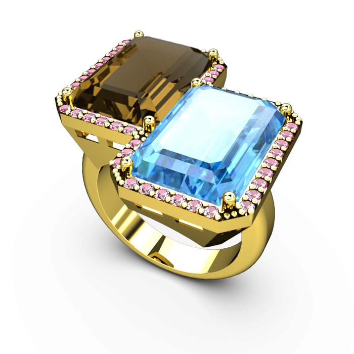 Dumanlı kuvars, akuamarin ve pembe kuvars 14 ayar altın yüzük