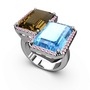 Dumanlı kuvars, akuamarin ve pembe kuvars 18 ayar beyaz altın yüzük