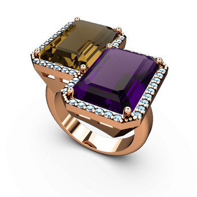 Dumanlı kuvars, ametist ve akuamarin 14 ayar rose altın yüzük