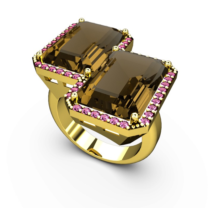 Dumanlı kuvars ve rodolit garnet 8 ayar altın yüzük