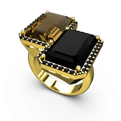 Dumanlı kuvars ve siyah zirkon 8 ayar altın yüzük