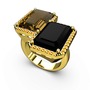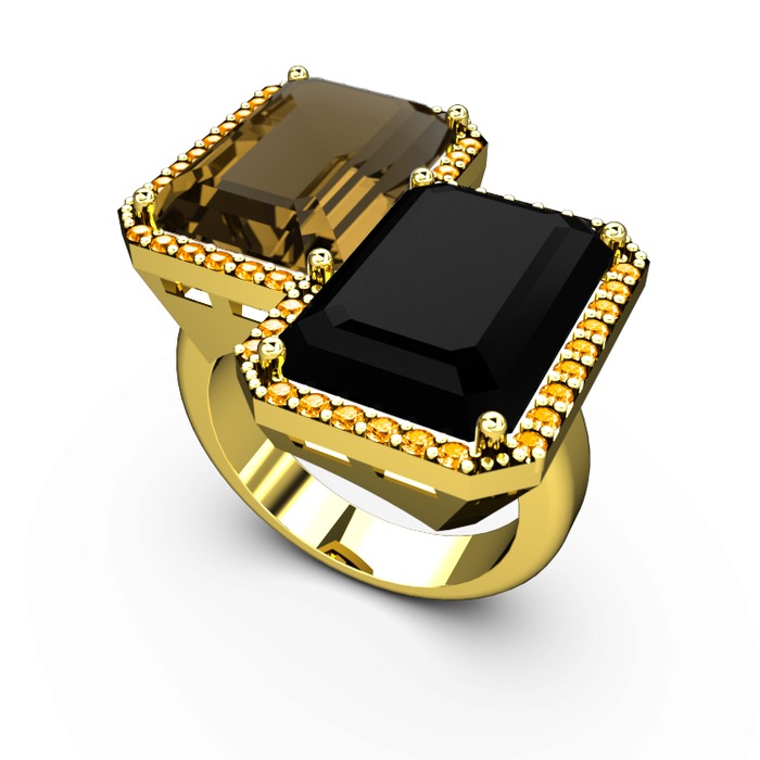 Dumanlı kuvars, siyah zirkon ve sitrin 14 ayar altın yüzük