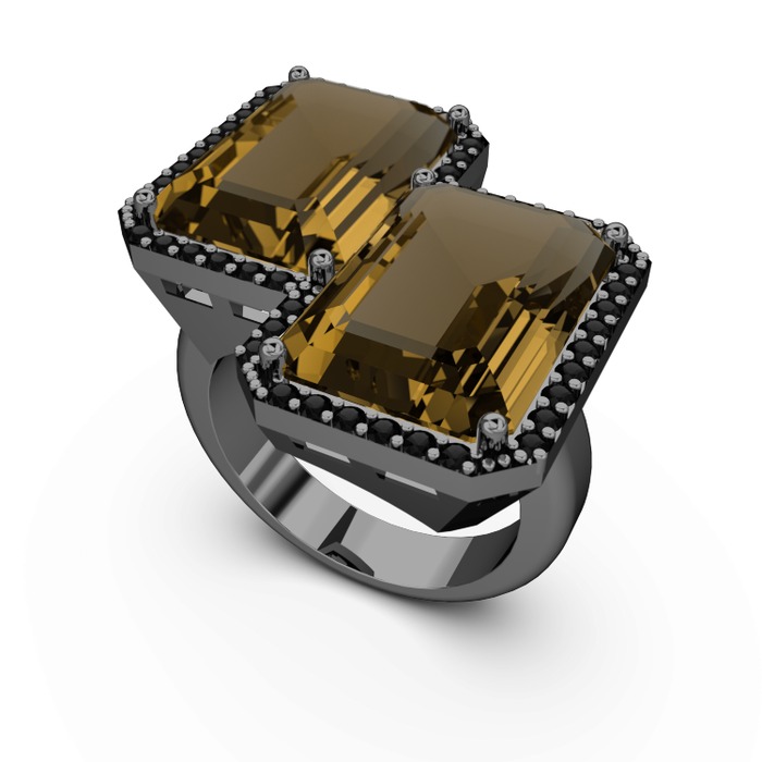 Dumanlı kuvars ve siyah zirkon 925 ayar siyah rodyum kaplama gümüş yüzük