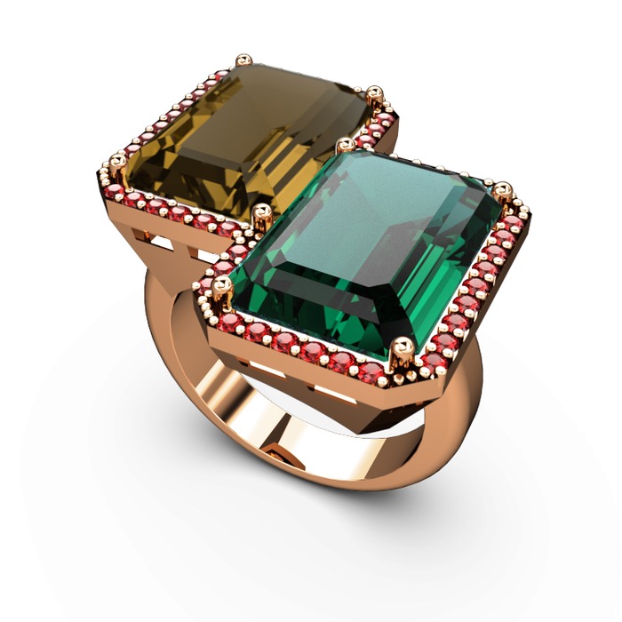 Dumanlı kuvars, yeşil kuvars ve garnet 8 ayar rose altın yüzük