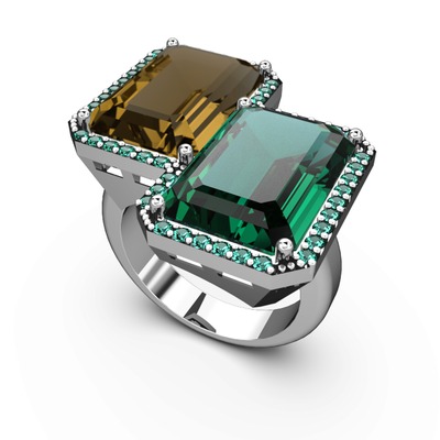 Dumanlı kuvars ve yeşil kuvars 925 ayar gümüş yüzük