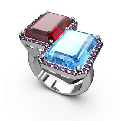 Garnet, akuamarin ve ametist 925 ayar gümüş yüzük