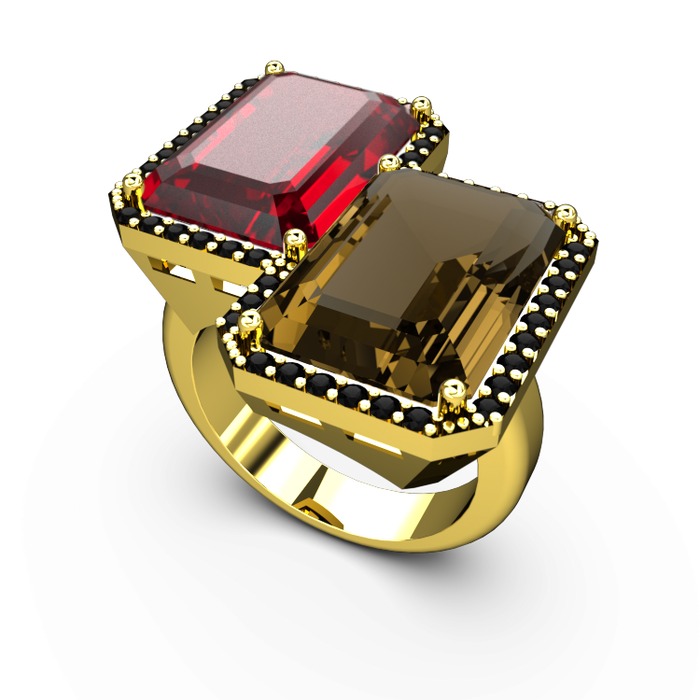 Garnet, dumanlı kuvars ve siyah zirkon 8 ayar altın yüzük