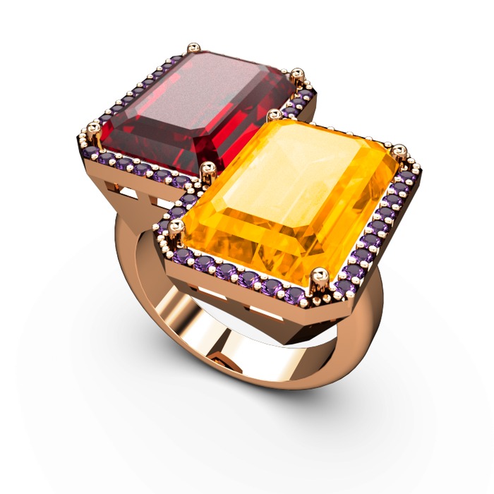 Garnet, sitrin ve ametist 925 ayar rose altın kaplama gümüş yüzük