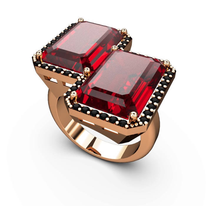 Garnet ve siyah zirkon 8 ayar rose altın yüzük