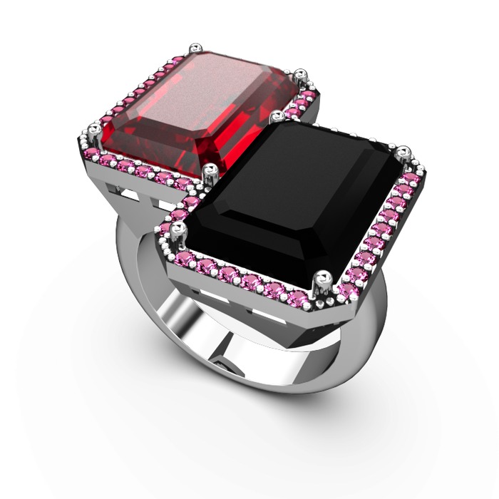 Garnet, siyah zirkon ve rodolit garnet 8 ayar beyaz altın yüzük