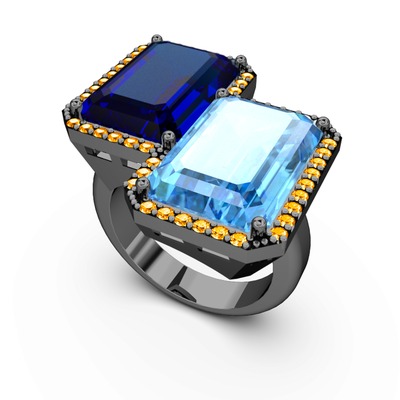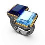 Lab safir, akuamarin ve sitrin 925 ayar siyah rodyum kaplama gümüş yüzük