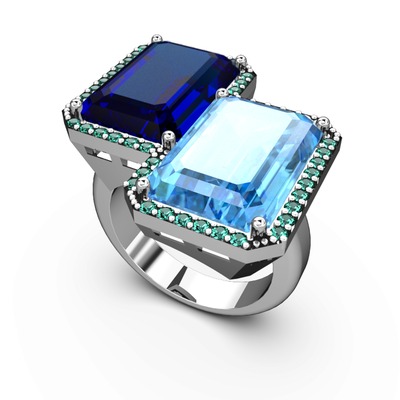 Lab safir, akuamarin ve yeşil kuvars 18 ayar beyaz altın yüzük