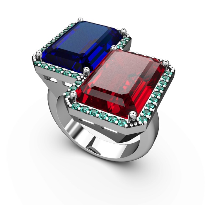 Lab safir, garnet ve yeşil kuvars 18 ayar beyaz altın yüzük