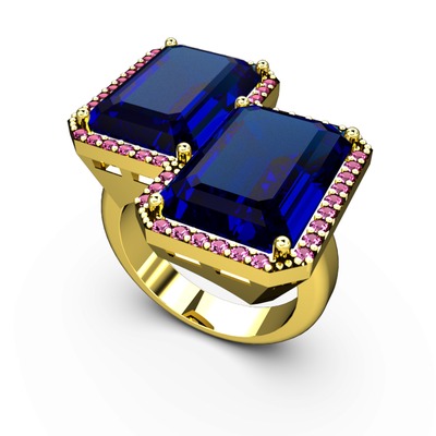 Lab safir ve rodolit garnet 18 ayar altın yüzük