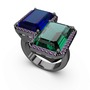 Lab safir, yeşil kuvars ve ametist 925 ayar siyah rodyum kaplama gümüş yüzük