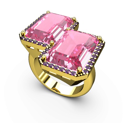 Pembe kuvars ve ametist 925 ayar altın kaplama gümüş yüzük