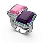 Pembe kuvars, ametist ve yeşil kuvars 18 ayar beyaz altın yüzük