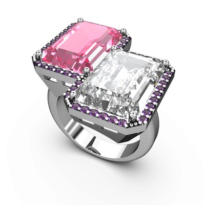 Pembe kuvars, beyaz zirkon ve ametist 8 ayar beyaz altın yüzük