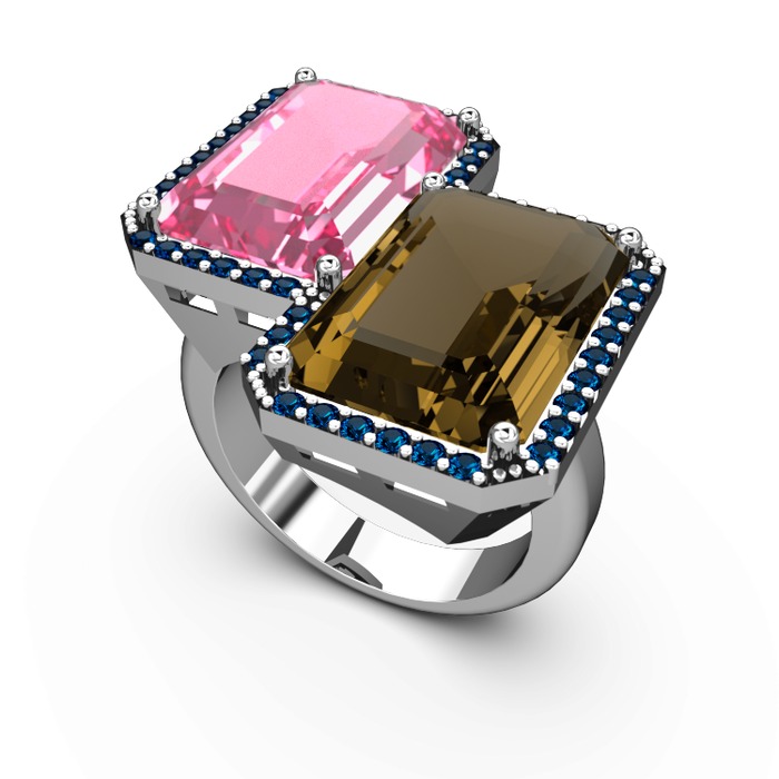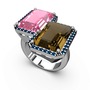 Pembe kuvars, dumanlı kuvars ve lab safir 18 ayar beyaz altın yüzük