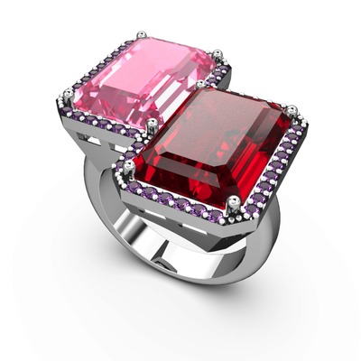 Pembe kuvars, garnet ve ametist 925 ayar gümüş yüzük