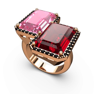 Pembe kuvars, garnet ve siyah zirkon 18 ayar rose altın yüzük
