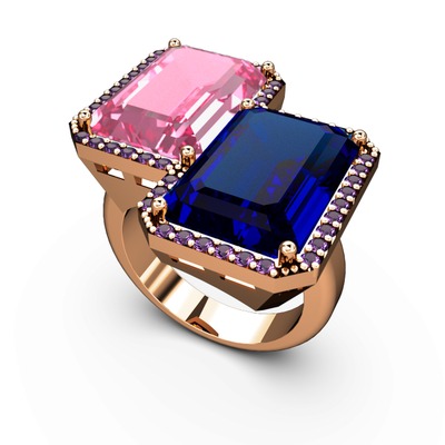 Pembe kuvars, lab safir ve ametist 18 ayar rose altın yüzük