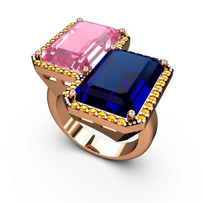 Pembe kuvars, lab safir ve sitrin 925 ayar rose altın kaplama gümüş yüzük