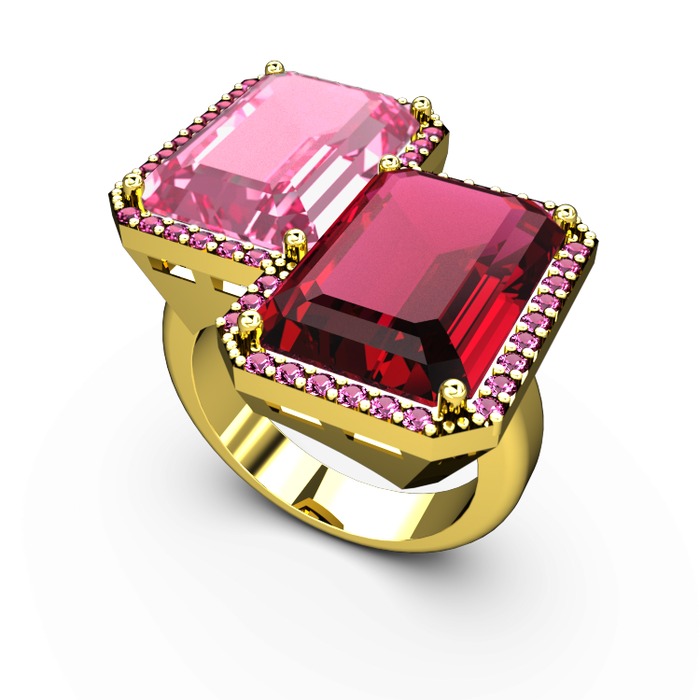 Pembe kuvars ve rodolit garnet 925 ayar altın kaplama gümüş yüzük