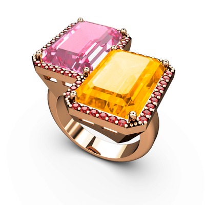Pembe kuvars, sitrin ve garnet 925 ayar rose altın kaplama gümüş yüzük