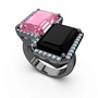 Pembe kuvars, siyah zirkon ve akuamarin 925 ayar siyah rodyum kaplama gümüş yüzük