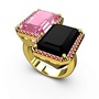 Pembe kuvars, siyah zirkon ve garnet 18 ayar altın yüzük