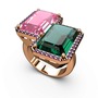 Pembe kuvars, yeşil kuvars ve ametist 925 ayar rose altın kaplama gümüş yüzük
