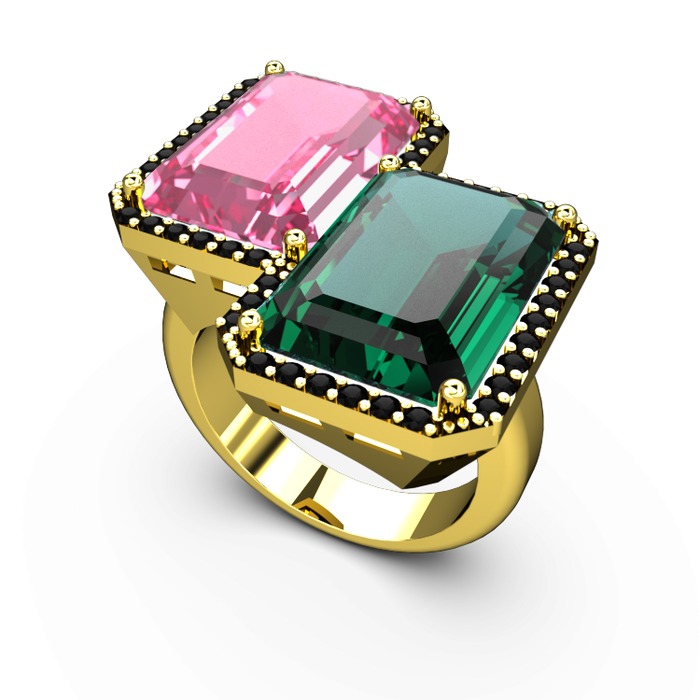 Pembe kuvars, yeşil kuvars ve siyah zirkon 14 ayar altın yüzük