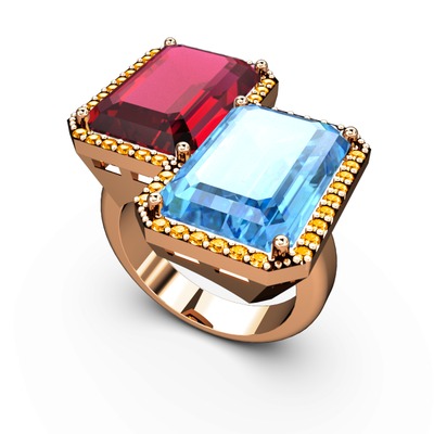 Rodolit garnet, akuamarin ve sitrin 14 ayar rose altın yüzük