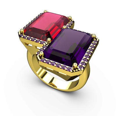 Rodolit garnet ve ametist 14 ayar altın yüzük