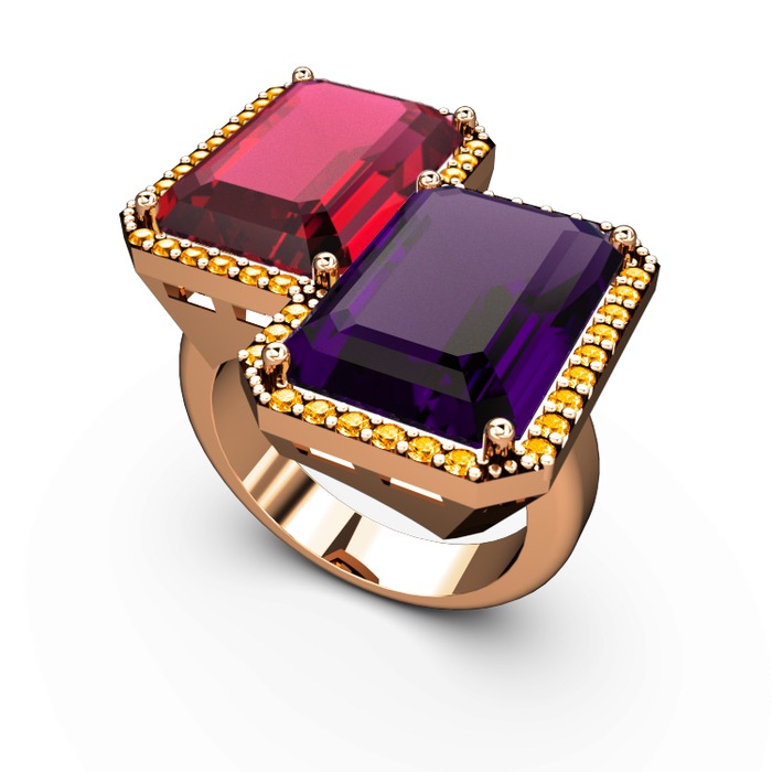 Rodolit garnet, ametist ve sitrin 18 ayar rose altın yüzük