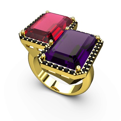 Rodolit garnet, ametist ve siyah zirkon 8 ayar altın yüzük