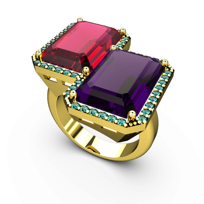 Rodolit garnet, ametist ve yeşil kuvars 14 ayar altın yüzük
